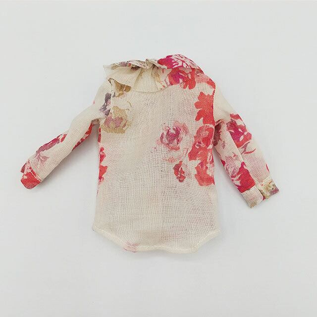 フリルカラーブラウス(アイボリー花プリント)